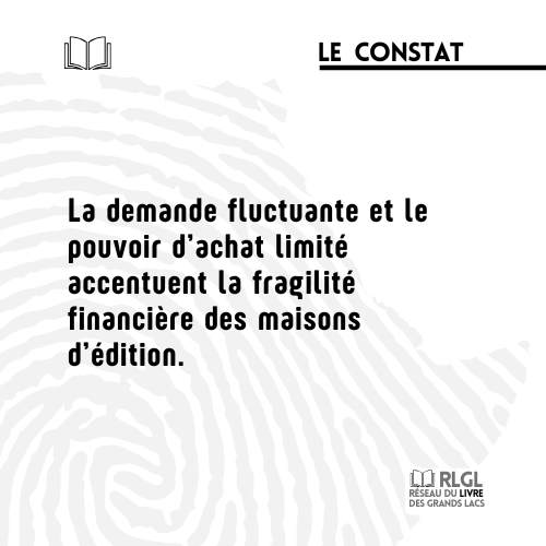 Les éditeurs locaux peinent à s’intégrer dans un marché souvent captif, dominé par quelques acteurs ou dépendant fortement des importations. La taille réduite du marché du livre, combinée à une demande variable et à un pouvoir d’achat limité, accentue la fragilité financière des maisons d’édition. Cette fragilité est renforcée par des compétences insuffisantes en gestion éditoriale et par une offre d’emploi extrêmement limitée dans les métiers du livre, ce qui freine l’émergence de professionnels qualifiés capables de structurer le secteur sur le long terme.
