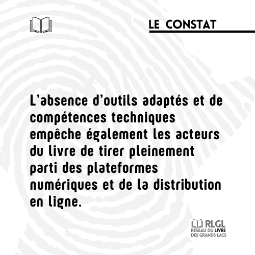 Parallèlement, le manque d’intégration des technologies de l’information et de la communication dans les pratiques éditoriales constitue un frein majeur dans un contexte où le numérique pourrait pourtant pallier les limites du marché physique. Les lacunes en matière d’outils techniques, de compétences numériques et de plateformes adaptées empêchent les acteurs du secteur de tirer pleinement parti des opportunités offertes par l’édition numérique, la distribution en ligne et les nouvelles formes de médiation culturelle.